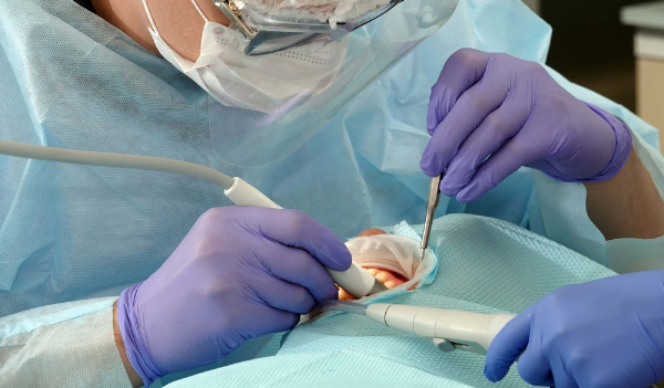 根管治療では歯の神経にアプローチするため、痛みを感じないようにするために麻酔を使用します。麻酔が効いたことを確認したら、まず歯の表面に小さな穴を開け、虫歯に感染した部分を丁寧に取り除きます。